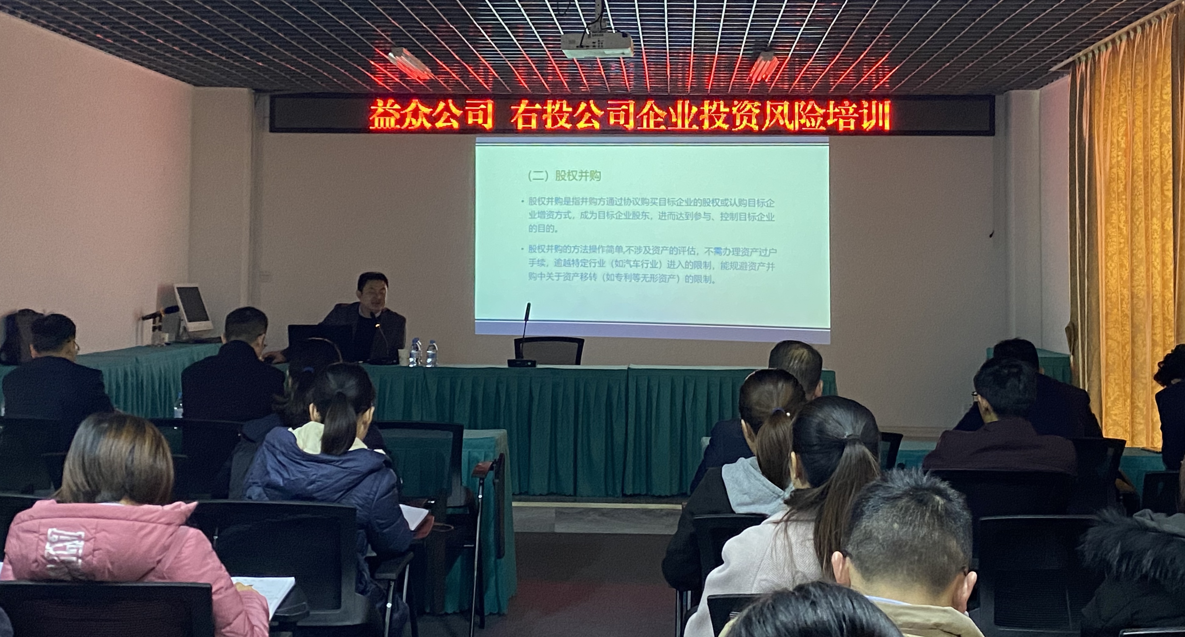 ????????為讓公司管理人員熟悉掌握企業(yè)投資風(fēng)險(xiǎn)防控和新發(fā)布的《民法典》有關(guān)知識(shí),提高公司投資風(fēng)險(xiǎn)防控的實(shí)操能力,降低企業(yè)法律風(fēng)險(xiǎn),近日,益眾公司在老鄉(xiāng)家園辦公區(qū)(益眾·尚城商業(yè)樓B1#三樓)會(huì)議室舉辦企業(yè)投資風(fēng)險(xiǎn)培訓(xùn)。培訓(xùn)邀請(qǐng)廣西同望律師事務(wù)所陸譽(yù)中律師主講,公司各部門(mén)、子公司負(fù)責(zé)人及有關(guān)人員約40多人參加培訓(xùn)。