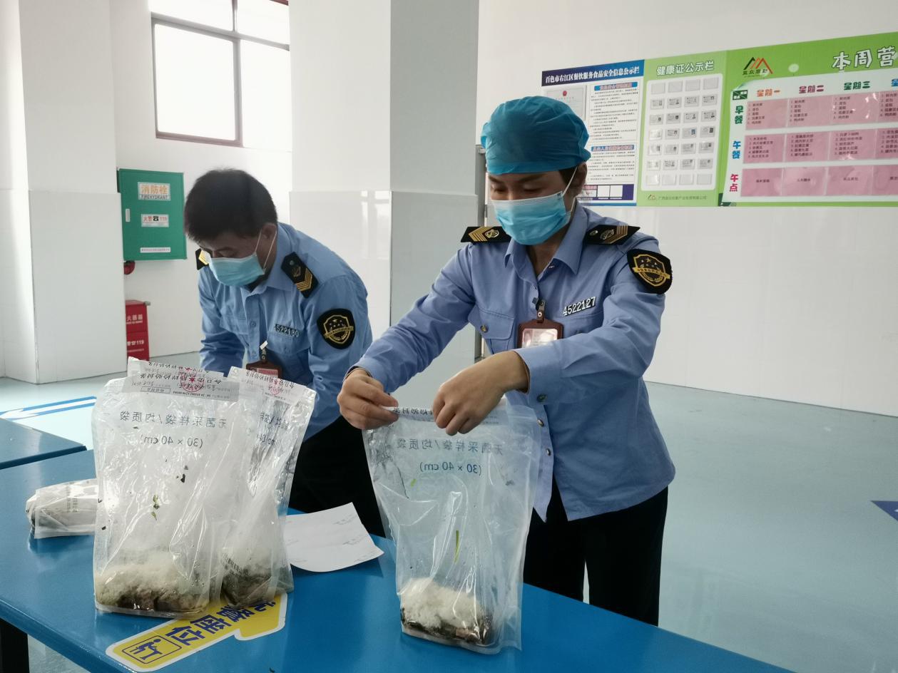 右江區(qū)市場(chǎng)監(jiān)督管理局到益眾托管校區(qū)開展食品安全抽樣檢查