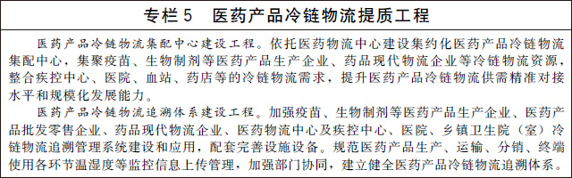 完善醫(yī)藥產(chǎn)品冷鏈物流設施網(wǎng)絡。鼓勵醫(yī)藥流通企業(yè)、藥品現(xiàn)代物流企業(yè)建設醫(yī)藥物流中心,完善醫(yī)藥冷庫網(wǎng)絡化布局及配套冷鏈設施設備功能,提升醫(yī)藥產(chǎn)品冷鏈全程無縫銜接的信息化管理水平。推動醫(yī)藥流通企業(yè)按《藥品經(jīng)營質(zhì)量管理規(guī)范》要求配備冷藏冷凍設施設備,支持疾控中心、醫(yī)院、鄉(xiāng)鎮(zhèn)衛(wèi)生院(室)等醫(yī)療網(wǎng)點提高醫(yī)藥產(chǎn)品冷鏈物流和使用環(huán)節(jié)的質(zhì)量保障水平。加強醫(yī)藥物流中心與冷鏈末端的無縫銜接,鼓勵發(fā)展多溫共配、接力配送等模式,探索發(fā)展超低溫配送,構(gòu)建廣覆蓋、高效率、低成本、安全可靠的醫(yī)藥產(chǎn)品冷鏈物流網(wǎng)絡。