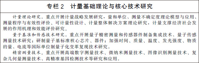 (四)加強(qiáng)計(jì)量基礎(chǔ)和前沿技術(shù)研究。加強(qiáng)計(jì)量學(xué)基礎(chǔ)理論和核心技術(shù)的原始創(chuàng)新。實(shí)施“量子度量衡”計(jì)劃,重點(diǎn)研究基于量子效應(yīng)和物理常數(shù)的量子計(jì)量技術(shù)及計(jì)量基準(zhǔn)、標(biāo)準(zhǔn)裝置小型化技術(shù),突破量子傳感和芯片級(jí)計(jì)量標(biāo)準(zhǔn)技術(shù),形成核心器件研制能力。研究人工智能、生物技術(shù)、新材料、新能源、先進(jìn)制造和新一代信息技術(shù)等領(lǐng)域精密測(cè)量技術(shù)。開(kāi)展測(cè)量不確定度、測(cè)量程序與有效性評(píng)價(jià)、計(jì)量作用機(jī)理和效能評(píng)價(jià)等理論研究。