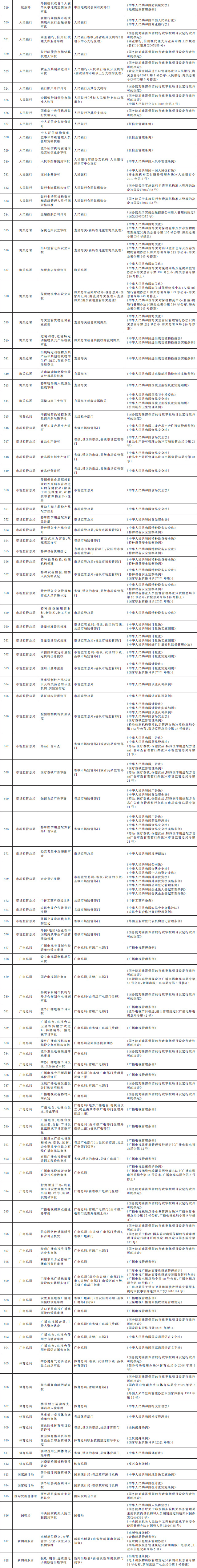 法律、行政法規(guī)、國務(wù)院決定設(shè)定的行政許可事項(xiàng)清單